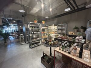 奥に進むとスタンドカフェとモダンな家具屋さん、そのまた奥にカフェレストランと雑貨屋さんがあります。雑貨屋さんはオーガニックのものを中心に販売してます。