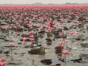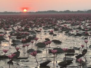 季節的な観光としてタイで有名なタレー・ブア・デーンに行ってきました。毎年12月~2月の早朝にタイの東北地方にあるノンハン湖(36㎢)が赤い蓮の花で絨毯のように広がる景色がこの時期だけに観れます。